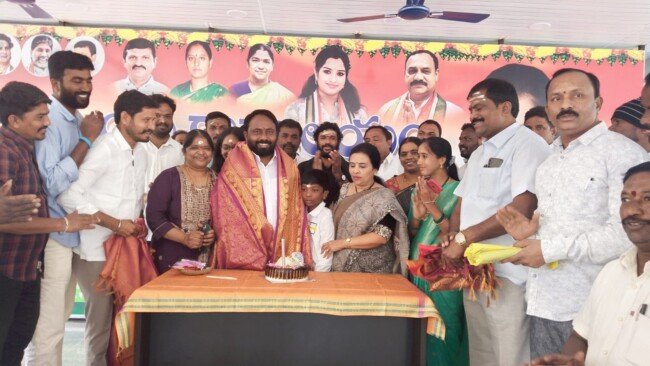 పాలకుర్తి నియోజకవర్గం లోని తొర్రూరు మార్కెట్ కమిటీ చైర్మన్ హనుమాండ్ల తిరుపతి రెడ్డి జన్మదిన వేడుకలను ఆదివారం మండల కేంద్రంలో గల ఎమ్మెల్యే క్యాంపు కార్యాలయంలో ఘనంగా నిర్వహించారు. కాంగ్రెస్ పార్టీ పాలకుర్తి నియోజకవర్గం ఇన్చార్జి హనుమాండ్ల ఝాన్సీ రెడ్డి తిరుపతి రెడ్డి జన్మదిన వేడుకల సందర్భంగా కేక్ కట్ చేసి, శాలువాతో సత్కరించి శుభాకాంక్షలు తెలిపారు. ఈ కార్యక్రమంలో బ్లాక్ కాంగ్రెస్ అధ్యక్షుడు రాపాక సత్యనారాయణ, పాలకుర్తి మార్కెట్ కమిటీ చైర్ పర్సన్ లావుడియా మంజుల భాస్కర్ నాయక్, పాలకుర్తి కొడకండ్ల దేవరుప్పుల మండలాల కాంగ్రెస్ పార్టీ అధ్యక్షులు గిరగాని కుమారస్వామి గౌడ్, ధరవత్ సురేష్ నాయక్ , నల్ల శ్రీరామ్, మండల ప్రధాన కార్యదర్శి బైరు భార్గవ్, పాలకుర్తి మాజీ సర్పంచ్ వీరమనేని యాకాంతరావు, యూత్ కాంగ్రెస్ నియోజకవర్గ అధ్యక్షులు ధారావత్ రాజేష్ నాయక్, నాయకులు వి ఆర్ ఫౌండేషన్ అధ్యక్షులు మొలుగురి యాకయ్య గౌడ్, పెనుగొండ రమేష్, అందే యాకయ్య తదితరులు పాల్గొన్నారు.