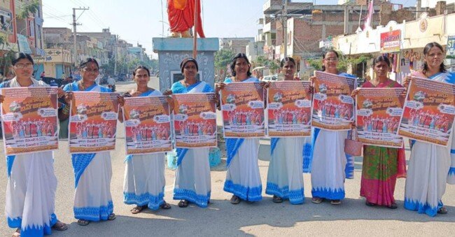 రాజన్న సిరిసిల్ల :ముస్తాబాద్ మండల కేంద్రంలో మండల ఆశా వర్కర్లు రాష్ట్రవ్యాప్తంగా ఆశా వర్కర్ల బస్సు జాతాను విజయవంతం చేయాలని మండల కేంద్రంలో రాజీవ్ చౌకు వద్ద పోస్టర్ ఆవిష్కరించారు. ఈనెల 15 నుంచి 31 వరకు రాష్ట్ర కమిటీ పిలుపులో భాగంగా బస్సు జతాన్ చేస్తున్నట్లు తెలిపారు ఈ సందర్భంగా వారు మాట్లాడుతూ రాష్ట్ర ప్రభుత్వం ఆశ వర్కర్లపై నిర్లక్ష్యం చేస్తూ గత ప్రభుత్వం లోఆశ వర్కర్లను చిన్నచూపు చూచిందని కాంగ్రెస్ ప్రభుత్వం అధికారంలోకి వస్తే మెరుగైన సౌకర్యాలు కల్పిస్తామని చెప్పి ఆశల సమస్యలు పరిష్కరించడం లేదని మండిపడ్డారు ఆశాలకు ఫిక్స్డ్ వేతనం 18 వేలు ఈఎస్ఐ పీఎఫ్ ఉద్యోగ భద్రత తదితర సమస్యలను పరిష్కరించాలి డిమాండ్ చేశారు.ఈ కార్యక్రమంలో మండల ఆశా వర్కర్లు పాల్గొన్నారు.