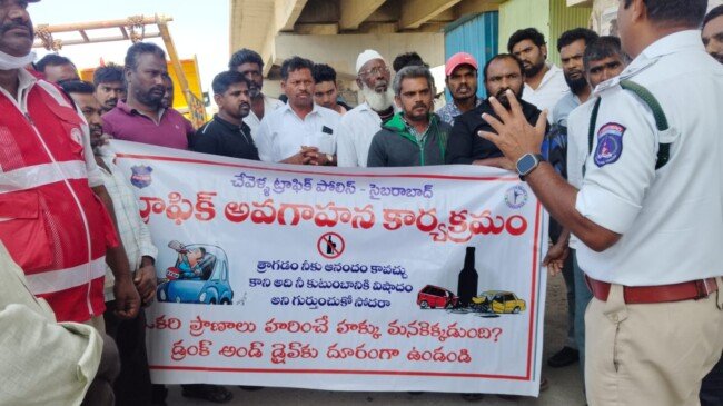 శంకర్పల్లిలోని ఫతేపూర్ వద్ద సోమవారం రోజున చేవెళ్ల ట్రాఫిక్ సీఐ వెంకటేశ్వరులు ఆధ్వర్యంలో నిర్వహించిన రహదారి భద్రత వారోత్సవాలలో భాగంగా ద్విచక్ర వాహనదారులకు, ఆటో డ్రైవర్లకు, రోడ్డుపై వెళ్లేటప్పుడు హెల్మెంట్ తప్పనిసరిగా వాడాలని, రాంగ్ రూట్లో వెళ్లొద్దని, తాగి వాహనాలు నడపవద్దని, సెల్ ఫోన్ మాట్లాడుతూ డ్రైవింగ్ చేయరాదు,ఫోర్ విలర్ నడిపేటప్పుడు ఎల్లప్పుడు సీట్ బెల్ట్ ధరించాలని, మైనార్లకు వాహనం ఇవ్వరాదని, మూలమలుపుల వద్ద ఇరువైపులా చూసుకుని వెళ్లాలని ప్రతి ఒక్కరూ రోడ్డు భద్రతా నియమ నిబంధనలు పాటించాలని ఏ ఎస్ ఐ చందర్ తెలిపారు, ఈ హెడ్ కానిస్టేబుల్ శంకర్, శ్రీను, కాన్స్టేబుల్ నైమ్ సురేష్.