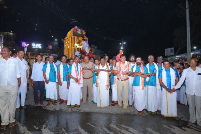రథోత్సవం సందర్భంగా విద్యుత్ తీగలు తో అంతరాయం కలగకుండా విద్యుత్ శాఖ అధికారులు నివారణ చర్యలు చేపట్టారు. రథోత్సవ కార్యక్రమాన్ని పురస్కరించుకొని భక్తులు ఎడ్ల బండ్లు, ట్రాక్టర్లు, ఆటోలు, బొలోరాలతో ఆంజనేయ స్వామి ఆలయం, శంకరుని విగ్రహం చుట్టూ తిప్పుతూ మొక్కులు తీర్చుకున్నారు. మహాశివరాత్రి బ్రహ్మోత్సవాల సందర్భంగా ఎలాంటి అవాంఛనీయ సంఘటనలు జరగకుండా విధులు నిర్వహించిన పోలీస్ సిబ్బందిని, ఎన్సిసి వాలంటీర్లను ఆలయ అధికారులు సన్మానించి ప్రశంసా పత్రాలను అందజేశారు. స్వామివారి కళ్యాణం సమన్వయంతో విజయవంతం చేయడం, స్వామి వారిని దర్శించుకునేందుకు పోలీసులు చేసిన కృషిని అభినందించారు. ఈ కార్యక్రమంలో ఆలయ సూపర్డెంట్ కొత్తపల్లి వెంకటయ్య, విద్యుత్ శాఖ ఏఈ ఆవిరినేని రణధీర్, ఎస్సై లింగారెడ్డి, అర్చకులు డివిఆర్ శర్మ, దేవగిరి అనిల్, మతగజం నాగరాజు, వాహనకారు లు చిదురాల ఎల్లయ్య, ఆలయ సిబ్బంది, అర్చకులు, భక్తులు పాల్గొన్నారు.