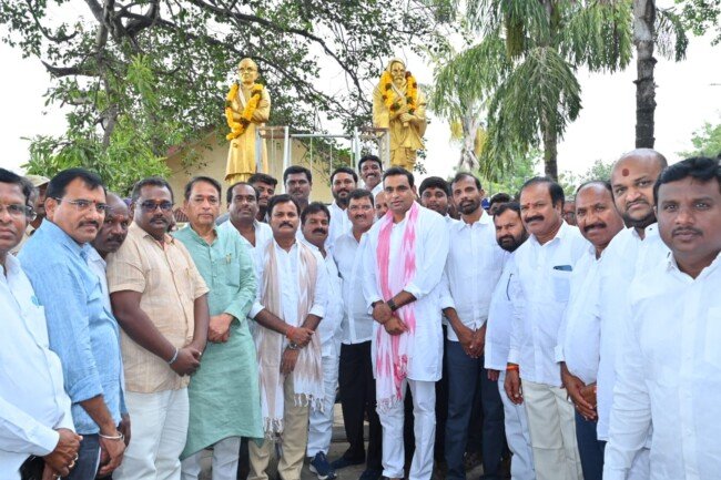 భూదానోద్యమానికి నాంది పలికి ,పట్టుచీరల తయారీలో ప్రపంచ ప్రసిద్ధిగాంచిన భూదాన్ పోచంపల్లికి రాష్ట్ర ముఖ్యమంత్రిని తీసుకువచ్చే బాధ్యత నాదని భువ నగిరి ఎంపీ చామల కిరణ్ కుమార్ రెడ్డి అన్నారు. భూదానోద్యమ పితామహుడు ఆచార్య వినోబా భావే 130 వ జయంతోత్సవం గురువారం నాడు యాదాద్రి భు వనగిరి జిల్లా- భూదాన్ పోచంపల్లి లో ఘనంగా నిర్వహించారు. ఈ కార్యక్రమాని కి ఎంపీ బోనగిరి ఎమ్మెల్యే తో కలిసి హాజరయ్యారు. ఈ సందర్భంగావినోబాభావే, భూదాత వెదిరే రామచంద్ర రెడ్డిల విగ్రహాలకు పూలమాలలు వేసి ,నివాళులు అ ర్పించారు. భూదాన్ స్తూపం వద్ద పుష్పాలు చల్లి ప్రణమిల్లారు.వినోబా ఆశ్రమంలో భూదానోద్యమ ఘట్టం కు సంబంధించిన చిత్రాలను తిలకించారు.అనంతరం గ్రా మీణ పర్యాటక కేంద్రం ఆవరణలో ప్రొఫెసర్ తడక యాదగిరి అధ్యక్షతన జరిగిన సమావేశంలో ఎంపీ మాట్లాడుతూ సీఎం రాకకు అనుకూల వాతావరణం, సన్నివే శం ఏర్పాటు చేసుకోవాలన్నారు .వచ్చే ఏప్రిల్ 18న సీఎంను ఇక్కడికి బాధ్యతతో తీసుకువస్తానన్నారు.100 ఎకరాల భూమిని దానమిచ్చిన రామచంద్రారెడ్డిని స్మ రించుకోవాల్సిన అవసరం ఉందన్నారు. పోచంపల్లి ఇంకా అభివృద్ధి చెందాలని ఎ క్స్పోజ్ చేయాల్సిన అవసరం ఉందన్నారు. ఇక్కడి చేనేత ఇక్కత్ చీరలను ప్రిం టింగ్ చేయడాన్ని అరికట్టే ప్రయత్నం చేస్తానన్నారు . భువనగిరి ఎమ్మెల్యే కుంభం అనిల్ కుమార్ రెడ్డి మాట్లాడుతూ భూధాన్ భూములు అక్రమార్జనకు గురికాకుం డా ఉంటే పేదోనికి భూమి చెందుతుండేదని, ప్రజా ప్రయోజనాలకు వాడబడు తుండేదన్నారు. భూదాన్ బోర్డు , ఏర్పాటుకు వచ్చే ఏప్రిల్ 18న సీఎంను ఇక్కడికి తీసుకు రావడానికి ప్రయత్నం చేస్తామన్నారు. ఈ సమావేశంలో వినోబ సేవా సం స్థల చైర్మన్ గున్న రాజేందర్ రెడ్డి మాట్లాడుతూ ప్రపంచం మొత్తంలో భూదానం గూర్చి చరిత్రలో పేజీ ఉన్న గ్రామం పోచంపల్లి అన్నారు .ఈ గ్రామం భూధాన్ గంగో త్రి అని ,వినోబా భావే తన రెండవ జన్మస్థలంగా ప్రకటించాడన్నారు .భూదాన్ బో ర్డు ఉండాలని, బోర్డు ఏర్పాటుకు ఎంపీ ,ఎమ్మెల్యే బాధ్యత తీసుకోవాలన్నారు. నా డు వినోబా భావే వెలిగించిన దీపం వల్లనే ఎంతోమంది పేద ప్రజలకు జీవన భుక్తి కై భూమి దానంగా లభించడం జరిగిందన్నారు.పద్మశాలి మహాజన సంఘం అధ్య క్షుడు సీత శ్రీరాములు మాట్లాడుతూ ఇక్కడ కులవృత్తులను ప్రభుత్వం ఆదుకుం టేనే పూర్వ వైభవం వస్తదన్నారు.కాంగ్రెస్ సీనియర్ నాయకుడు వెంకటేష్ మాట్లా డుతూ ప్రభుత్వం తరఫున ఈ కార్యక్రమాలు నిర్వహించాలని కోరారు.స్థానిక వి నోబా ఆశ్రమం ప్రారంభోత్సవానికి సీఎంను తీసుకురావాలని కోరడం జరిగింది .ఈ సందర్భంగా ప్రభుత్వ పాఠశాలలో విధులు నిర్వర్తించి ,పదవి విరమణ పొందిన రాచకొండ సత్తయ్యను సన్మానించారు.ఈ కార్యక్రమానికి స్థానిక పట్టుచీరల ఉత్ప త్తిదారుల స