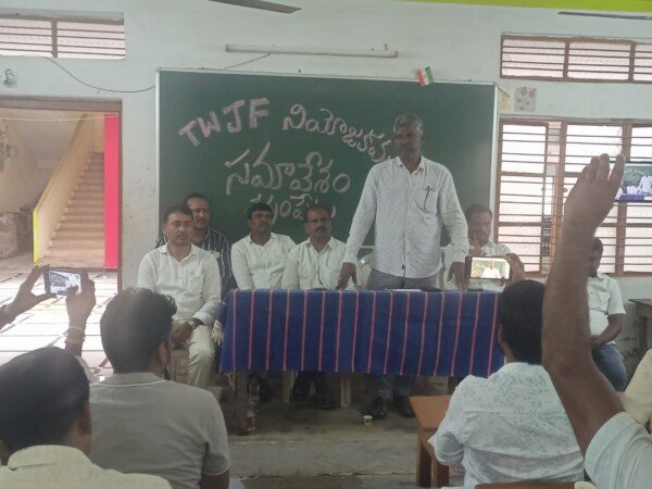నర్సంపేట పట్టణంలోని కేఎస్ఆర్ కాన్సెప్ట్ స్కూల్ లో టీడబ్ల్యూజేఎఫ్ నర్సంపేట నియోజకవర్గ స్థాయి జిల్లా ఉపాధ్యక్షులు కిషన్, కొమ్ము రాజు ల అధ్యక్షతన సమావేశం నిర్వహించారు. ఈ సమావేశంలో ముఖ్య అతిథిగా టీడబ్ల్యూజేఎఫ్ రాష్ట్ర కార్యదర్శి బొక్క దయాసాగర్ మాట్లాడుతూ జర్నలిస్టులు తమ వృత్తి ధర్మాన్ని కొనసాగిస్తున్న క్రమంలో అనేక ఒడిదుడుకులు ఎదుర్కొంటున్నారన్నారు. ప్రజల పక్షాన, అనేక సమస్యలను, అక్రమాలను వెలుగులోకి తీసుకొచ్చే క్రమంలో దాడులకు గురవుతున్నారని ఆందోళన వ్యక్తం చేశారు.