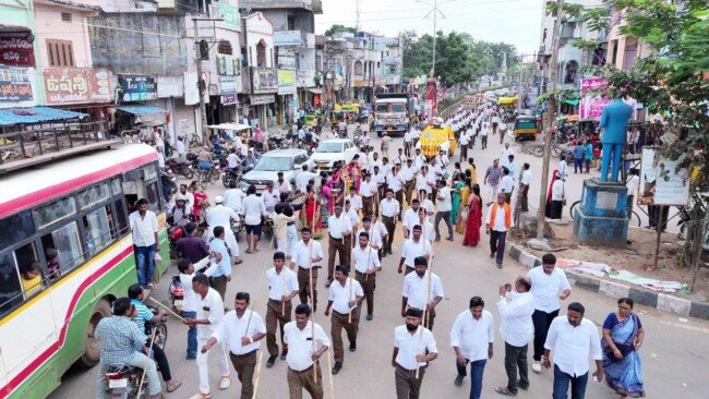 నర్సంపేట నగరంలో ఆదివారం ఆర్ఎస్ఎస్ స్వయంసేవకులు నిర్వహించిన పథసంచలన్ (కవాతు) నగరవాసులను విశేషంగా ఆకర్షించింది. నెక్కొండ, చెన్నారావుపేట, నర్సంపేట, ఖానాపురం మండలాల స్వయంసేవకులు పాల్గొన్నారు. రూట్ మార్చ్ వీక్షకులను మంత్రముగ్ధులను చేసింది. ఈ కవాతులో ఆర్ఎస్ఎస్ ఘోష్ బృందం (బ్యాండ్ బృందం) వాయిద్యాలను మ్రోగిస్తూ ముందు నడుస్తుండగా మధ్యలో పూలతో అలంకరించిన జీపుపై భరతమాత, డాక్టర్ జీ, గురూజీ చిత్రపటాలతోపాటు భగవద్వజాన్ని (కాషాయ జెండా) ఉంచి వెనక పూర్తి గణవేష(యూనిఫామ్) ధరించిన స్వయంసేవకులు ఒక క్రమ పద్ధతిలో, లయబద్ధంగా కవాతు చేస్తూ నడుస్తున్న తీరు చూపర్లను ఆకట్టుకుంది. దారి పొడవునా స్థానికులు, మహిళలు భగవాద్వజంపై పూలు చల్లుతూ మంగళహారతి పట్టారు.
