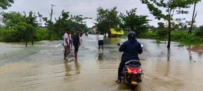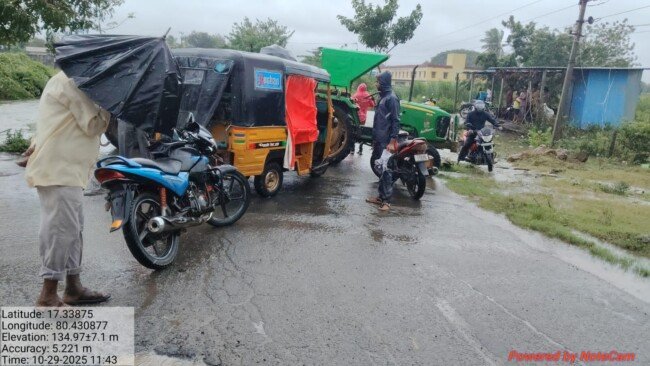 మోంథా తుపాను ప్రభావంతో కురుస్తున్న భారీ వర్షాల కారణంగా ఏన్కూరు–లింగన్నపేట రహదారిపై వాగు అలుగుపడి రోడ్డుపై నీరు ప్రవహిస్తోంది. వరద ఉధృతి కారణంగా రాకపోకలు తీవ్రంగా అంతరాయం ఎదుర్కొంటున్నాయి.ప్రమాదాలను నివారించేందుకు లింగన్నపేట గ్రామ పంచాయతీ కార్యదర్శి గోపి, సిబ్బందితో కలిపి అప్రమత్తంగా వ్యవహరిస్తున్నారు. రోడ్డుపై ఇరువైపులా ట్రాక్టర్లు నిలిపి, ప్రజలను వరద నీటిలోకి వెళ్లకుండా అడ్డుకుంటూ జాగ్రత్త చర్యలు తీసుకుంటున్నారు. అధికారులు ప్రజలను అత్యవసర పరిస్థితులు తప్ప రాకపోకలకు దూరంగా ఉండాలని హెచ్చరిస్తున్నారు.