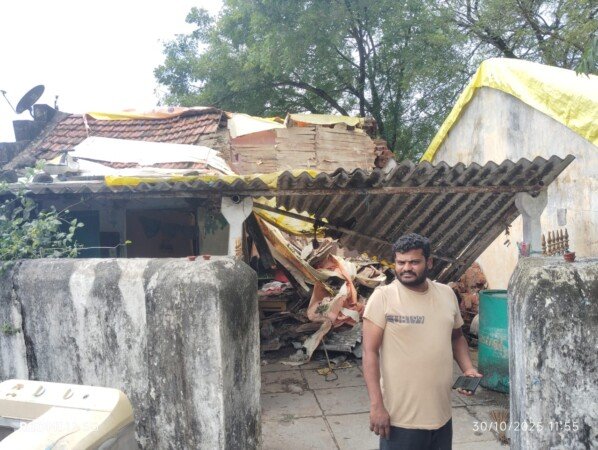 నెక్కొండ మండలంలోని సాయిరెడ్డి పల్లి గ్రామనికి చెందిన పొదిల జయప్రకాశ్, మౌనికలు నివసిస్తున్న పెంకటిల్లు మొంథా తుఫాన్ ప్రభావంతో ఇంటి చుట్టూ నీరు చేరి గోడలు వర్షానికి నాని అర్థ రాత్రి ఇల్లు కూలడం జరిగింది. వారు నిద్రిస్తున్న సమయంలో పెద్దగా శబ్దం రావడంతో హడావిడిగా బయటికి వచ్చి చూడగా గోడ కూలడం జరిగింది. ఈ విషయాన్ని గమనించి భయభ్రాంతులకు గురై నిద్రిస్తున్న తమ ఇద్దరి పిల్లలను తీసుకొని హడావిడిగా బయటికి రావడం జరిగింది. జయప్రకాష్ మాట్లాడుతూ.. ఆ సమయంలో నాకు నిద్ర నుండి మేలుకువ రాకపోతే ఈ పాటికి మా కుటుంబం మొత్తం జీవించి ఉండకపోయేది. కనుక ఈ విషయాన్ని అధికారులు, ప్రభుత్వం గుర్తించి ప్రస్తుతం ఉండడానికి నివాసాన్ని ఏర్పాటు చేసి, ఆర్థికంగా సహాయం చేసి మా కుటుంబాన్ని ఆదుకోవల్సిందిగా కోరుచున్నాము. అని తెలపడం జరిగింది. ఈ బాధాకర ఘటనకు గ్రామస్తులు కూడా చింతించడం జరిగింది.