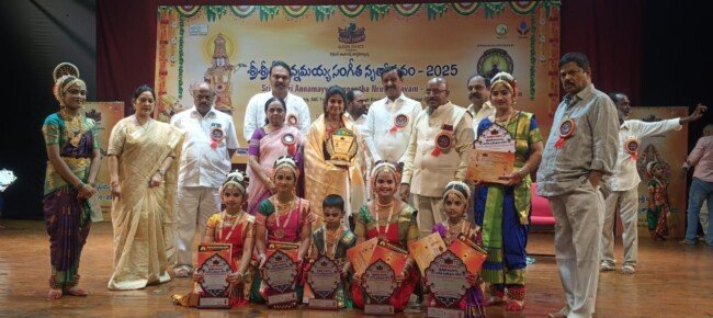 ప్రముఖ పుణ్యక్షేత్రమైన తిరుపతిలోని భారత్ ఆర్ట్ అకాడమీ ఆధ్వర్యంలో నిర్వ హించిన అన్నమయ్య నృత్యోత్సవాల(2025)లోయాదాద్రి భువనగిరి జిల్లా -భూ దాన్ పోచంపల్లి కి చెందిన కూచిపూడి నృత్య బృందం చేసిన నృత్య ప్రదర్శన ఆక ట్టుకున్నందున ఈ బృందాన్ని అకాడమీ వారు సన్మానించడం జరిగింది. స్థానిక శ్రీ దేవి కూచిపూడి అకాడమీ ఆధ్వర్యంలో కూచిపూడి గురువు బడుగు నికిత తన శిష్య బృందం సిరిమల్లె గీతిక , భవిష్య ,ఐశ్వర్య, నవీన లతో కలిసి నృత్య ప్రదర్శ న చేయడం జరిగింది. చిన్నారుల నృత్య ప్రదర్శన ఆకట్టుకోవడంతో అకాడమీ వా రు నిఖిత శిష్య బృందాన్ని శాలువాలతో సత్కరించి, మెమెంటోలు అందజేశారు.
