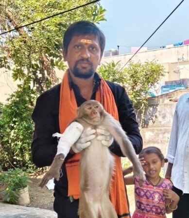 తల్లాడ పోలీస్ స్టేషన్ సమీపంలో వానరాల గుంపులో చోటుచేసుకున్న గొడవలో ఒక వానరం తీవ్రంగా గాయపడింది. రక్తస్రావంతో బాధపడుతున్న వానరాన్ని గమనించిన తల్లాడ పోలీస్ కానిస్టేబుల్ తేజావత్ నరేష్ వెంటనే స్పందించారు.గాయపడిన వానరాన్ని రెండు చేతులతో ఎత్తుకుని ప్రభుత్వ ఆసుపత్రికి తీసుకెళ్లి వైద్య పరీక్షలు చేయించారు. రక్తస్రావం ఆగేలా వైద్య పరికరాలతో చేతికి కట్టు వేసి చికిత్స అందించారు. అనంతరం వానరానికి పండ్లు, ఫలాలు స్వయంగా తినిపించి వానరం తిరిగి అడవిదారిలోకి వెళ్లేలా సహాయపడ్డారు.మానవతా విలువలను చాటుకున్న కానిస్టేబుల్ నరేష్ సేవాభావాన్ని స్థానికులు ప్రశంసిస్తూ అభినందనలు తెలిపారు.