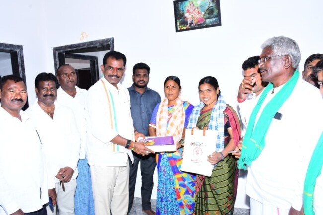 వనపర్తి జిల్లా పెద్దమందడి మండలం మంగంపల్లి గ్రామ తండాకు చెందిన ఉన్స్ వాత్ దేవి, ఉన్సా వత్ శంకరమ్మ ఇందిరమ్మ ఇంటి గృహప్రవేశానికి వనపర్తి ఎమ్మెల్యే మేఘారెడ్డి హాజరై వారికి నూతన వస్త్రాలను అందించి అభినందించారు. మంగంపల్లి గ్రామానికి చెందిన గుజ్జుల చెన్నమ్మ నూతన గృహప్రవేశానికి సైతం ఎమ్మెల్యే హాజరై నూతన వస్త్రాలను అందించి ఇందిరమ్మ ఇల్లు నిర్మించుకున్న లబ్ధిదారులకు అభినందనలు తెలిపారు.ఈ సందర్భంగా ఎమ్మెల్యే మాట్లాడుతూ ప్రతి మనిషి జీవితంలో సొంతింటి కల నెరవేర్చుకునేందుకు ఎన్నో ఇబ్బందులు ఎదుర్కొంటాడని అలాంటి ఇబ్బందులను గుర్తించిన కాంగ్రెస్ పార్టీ నిరుపేదల సొంతింటి కలను నెరవేర్చేందుకు రూ. ఐదు లక్షల రూపాయలు మంజూరు చేస్తుందని ఎమ్మెల్యే పేర్కొన్నారు. ఇందిరమ్మ ఇంటి గృహ నిర్మాణాలకు సంబంధించి దళారుల నమ్మి మోసపోకూడదని ఎవరికి ఒక్క రూపాయి కూడా ఇవ్వాల్సిన అవసరం లేకుండా మీకు రూ 5 లక్షల రూపాయల బిల్లును ప్రభుత్వం మంజూరు చేస్తుందని సూచించారు. ఈ కార్యక్రమంలో కాంగ్రెస్ పార్టీ నాయకులు కార్యకర్తలు తదితరులు పాల్గొన్నారు.