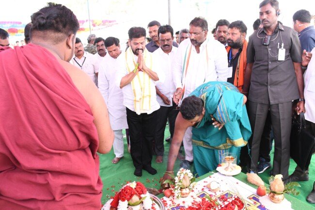 తెలంగాణ రాష్ట్ర ముఖ్యమంత్రి రేవంత్ రెడ్డి జిల్లాల పర్యటనల్లో భాగంగా సోమవారం నారాయణపేట జిల్లా మక్తల్ నియోజకవర్గంలోని ఆత్మకూరుకి చేరుకున్నారు. ఈ సందర్భంగా ముఖ్యమంత్రికి మంత్రి శ్రీహరి, ఉమ్మడి పాలమూరు జిల్లా ఎమ్మెల్యేలు, ముఖ్య నాయకులు ఘన స్వాగతం పలికారు. ఈ సందర్భంగా ఆత్మకూర్ పట్టణ, పీజేపీ క్యాంపు ఆవరణలో సోమవారం సీఎం రేవంత్ రెడ్డి.. మంత్రి వాకిటి శ్రీహరితో కలసి రూ.173 కోట్ల అభివృద్ధి పనులకు శంకుస్థాపన చేశారు. రూ.122 కోట్లతో ఆత్మకూర్ నుంచి జోగులంబ గద్వాలకు హై లెవల్ బ్రిడ్జి నిర్మాణం, అదేవిదంగా రూ.22కోట్లతో 50 పడకల హాస్పటల్ నిర్మాణం, అమరచింత, ఆత్మకూర్ మున్సిపాలిటీల్లో మౌళిక వసతుల కోసం రూ.30 కోట్లతో అభివృద్ధి పనులకు ఆయన శంకుస్థాపన చేశారు. అంతకు ముందు జాతర మైదానం నుంచి సీఎం రేవంత్ రెడ్డి రోడ్డు షోలో పాల్గొని, శంకుస్థాపన స్థలానికి చేరుకున్నారు. కార్యక్రమాలలో సీఎం రేవంత్ రెడ్డి తో పాటు రాష్ట్ర మంత్రులు దామోదర రాజనర్సింహ, వాకిటి శ్రీహరి,జూపల్లి కృష్ణారావు, కోమటిరెడ్డి వెంకట్ రెడ్డి, రాష్ట్ర ప్రణాళిక సంఘం ఉపాధ్యక్షుడు డాక్టర్ చిన్నారెడ్డి, స్పోర్ట్స్ అథారిటీ చైర్మన్, వనపర్తి జిల్లా బీసీసీ అధ్యక్షులు శివసేనరెడ్డి, ఎమ్మెల్యేలు మెగా రెడ్డి, జిఎంఆర్, బండ్ల కృష్ణమోహన్ రెడ్డి, జోగులాంబ గద్వాల జిల్లా పరిషత్ మాజీ అధ్యక్షురాలు సరిత తిరుపతయ్య ఉన్నారు.