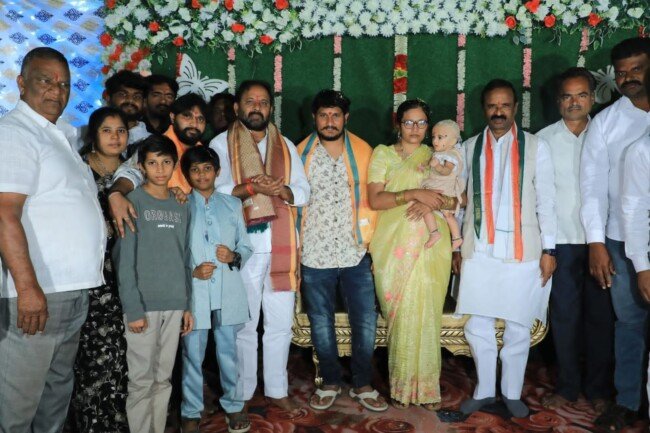 ఖమ్మం జిల్లా ఏనుకూరు మండలం గాయత్రి హాస్పిటల్ వైద్యులు డాక్టర్ కొలిశెట్టి నరేష్, డాక్టర్ కొలిశెట్టి రమేష్ ప్రసన్నల కుమార్తె చిన్నారి ఆద్యవేద రమణి పుట్టు వెంట్రుకల వేడుక గురువారం ఘనంగా జరిగింది.ఈ వేడుకకు వైరా ఎమ్మెల్యే రాందాస్ నాయక్, జిల్లా కాంగ్రెస్ పార్టీ మాజీ అధ్యక్షుడు పువ్వాళ్ల దుర్గాప్రసాద్, సొసైటీ చైర్మన్ శెట్టిపల్లి వెంకటేశ్వరరావు, మార్కెట్ చైర్మన్ లచ్చిరాం నాయక్, మండల అధ్యక్షుడు స్వర్ణ నరేందర్, మాజీ చైర్మన్ లాలూ నాయక్, గుడ్ల వెంకటేశ్వరరావు, నల్లమల శివకుమార్, స్వర్ణ ప్రహల్లాదరావు, జాగర్లమూడి రంజిత్ తదితరులు హాజరై చిన్నారిని ఆశీర్వదించారు.ఈ కార్యక్రమంలో కుటుంబ సభ్యులు, బంధువులు, గ్రామస్థులు పెద్ద సంఖ్యలో పాల్గొన్నారు.