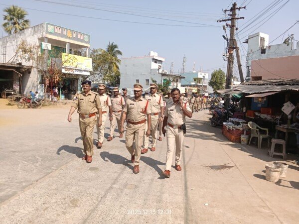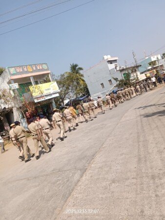 మండలంలోని స్థానిక సర్పంచ్ ఎన్నికల నేపథ్యంలో మండల కేంద్రంలో శాంతిభద్రలు కట్టి తిట్టడం చేయడంలో భాగంగా పోలీసులు కవాతు నిర్వహించారు. మండలంలో ఎలాంటి అవాంఛనీయ సంఘటనలు జరగకుండా ప్రశాంతంగా పారదర్శకంగా సాగేందుకు తీసుకునే చర్యల్లో భాగంగా ఈ కవాతు చేపట్టినట్లు తెలిపారు. ప్రజల్లో భద్రత భావం పెంచటం తో పాటు అక్రమ కార్యకలాపాలకు అడ్డుకట్ట వేయడమే లక్ష్యంగా ఈ కార్యక్రమం నిర్వహించామనీ పోలీసు అధికారులు వెల్లడించారు. మండలంలోని పోలింగ్ కేంద్రాల వద్ద ఎలాంటి అవాంఛనీయ సంఘాలు ఎదురైన పోలీసులకు సమాచారం తెలుపాలని అన్నారు. ఈ కవాతులో ఏసీబీ రవీందర్ రెడ్డి, , సిఐలు రఘుపతి రెడ్డి, సాయి రమణ, స్థానిక ఎస్ఐ గోవర్ధన్ పోలీస్ బృందాలు పాల్గొన్నారు.