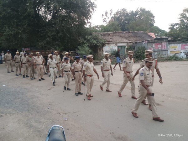 నర్సంపేట మండలంలో 17 వ తేదీన జరుగు ఎన్నికలు ప్రశాంత వాతావరణంలో జరిగేందుకు, ప్రజలు తమ ఓటు హక్కు ను స్వేచ్చ గా , ధైర్యంగా వినియోగించుకొనేందుకు మీకు మేమున్నాం అను బరోసా కల్పిస్తూ మండలంలోని కమ్మపల్లి, దాసరిపల్లి, చంద్రయ్యపల్లి, బానోజీపేట, భోజనయక్తండ లో కవాతు నిర్వహించడం జరిగింది. ఇట్టి కవాతు లో నర్సంపేట మరియు దుగ్గొండి సీ ఐ లు రఘుపతి రెడ్డి, సాయి రమణ మరియు ఎస్ ఐ లు పాల్గొనడం జరిగింది.