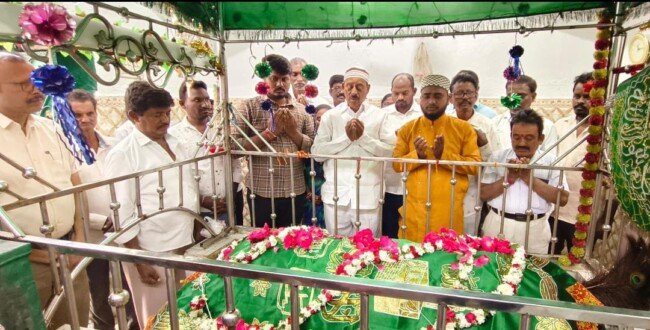 నడికూడ మండలం ముస్త్యాలపల్లి గ్రామంలోని మహమ్మద్ ఖాజా ఖాద్రి దర్గా యందు ఉర్సు షరీఫ్ అజాజ్ మదర్ షా వలి ఉత్సవాలకు పరకాల శాసన సభ్యు లు రేవూరి ప్రకాష్ రెడ్డి హాజరై, చాధర్ సమర్పించి, ప్రత్యేక ప్రార్థనలు చేశారు. ఈ సందర్భంగా ఎమ్మెల్యే మాట్లాడుతూ… ముస్త్యాలపల్లి దర్గాకు ఎంతో ప్రాముఖ్యత కలిగి ఉందని పేర్కొన్నారు. ఉర్సు షరీఫ్ అజాజ్ మదర్ షావలి ఉత్సవాలకు వచ్చే భక్తులకు ఎలాంటి ఇబ్బందులు కలగకుండా అవసర మైన చర్య లు చేపట్టాలన్నారు. కాంగ్రెస్ ప్రజా ప్రభుత్వం అధికారంలోకి వచ్చిన తర్వాత మత సామరస్యాన్ని కాపాడుతూ అందరికీ సమాన న్యాయం అందే లా చేస్తున్నామన్నారు. పరకాల నియోజకవర్గ ప్రజలు సుఖ సంతోషాలతో ఉండాలని కోరారు. దర్గా పరిసర ప్రాంతాలను పరిశీలించి, దర్గా అభివృద్ధికి కృషి చేస్తానని అన్నారు. అనంతరం ముస్త్యాలపల్లి గ్రామ ప్రాథమిక పాఠశాల కు స్వచ్ఛ ఇవం హరిత్ విద్యాలయ రేటింగ్ (ఎస్ హెచ్ వి ఆర్) రాష్ట్ర స్థాయిలో సెలెక్ట్ అయిన సందర్భంగా ..పాఠశాల ప్రధానో పాధ్యాయులు కందుకూరి శ్రీనివాస్ ను ఎమ్మెల్యే రేవూరి శాలువాతో సన్మానించారు. ఎమ్మెల్యే వెంట ఎంపీడీవో ఆర్. రామకృష్ణ, డిప్యూటీ తహాసిల్దార్ సత్యనారాయణ, మండల పార్టీ అధ్యక్షుడు బుర్ర దేవేందర్ గౌడ్, నడికూడ సర్పంచ్, మండల పార్టీ ప్రధాన కార్యదర్శి కుడ్ల మలహాల్ రావు, ముస్త్యాలపల్లి సర్పంచ్ మేకమల్ల వెంకటేశ్వర్లు, నాయకులు పర్నెం మల్లారెడ్డి, ఈర్ల చిన్ని, వేణు చారి, కార్యకర్తలు, తదితరులు పాల్గొన్నారు.