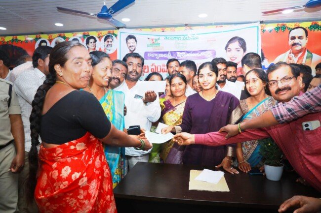 రాజకీయాలకు అతీతంగా కాంగ్రెస్ ప్రజా ప్రభుత్వం అమలు చేస్తున్న సంక్షేమ పథకాలను అందించేందుకు కృత నిశ్చయంతో పనిచేస్తున్నామని ఎమ్మెల్యే మామిడాల యశస్విని రెడ్డి అన్నారు.శనివారం జనగామ జిల్లా పాలకుర్తి మండల కేంద్రంలో గల ఎమ్మెల్యే క్యాంపు కార్యాలయంలో పాలకుర్తి మండలంలోని వివిధ గ్రామాలకు చెందిన 116 మందికి రూ,1 కోటి16 లక్షల 13 వేల 456 విలువైన చెక్కులను, కొడకండ్ల మండలంలోని వివిధ గ్రామాలకు చెందిన 35 మంది లబ్ధిదారులకురూ, 45 లక్షల 5 వేల 220 విలువైన చెక్కులను, దేవరుప్పుల మండలంలోని 94 మంది కి రూ,94 లక్షల పదివేల 904 విలువైన కళ్యాణ లక్ష్మి, షాది ముబారక్ చెక్కులను అర్హులైన లబ్ధిదారులకు ఎమ్మెల్యే యశస్విని రెడ్డి అందజేశారు. ఈ సందర్భంగా ఎమ్మెల్యే మాట్లాడుతూ పేదల కళ్ళలో ఆనందాన్ని చూడాలన్నదే సీఎం రేవంత్ రెడ్డి లక్ష్యమన్నారు. కళ్యాణ లక్ష్మి, షాది ముబారక్ చెక్కులు అందించడంలో సీఎం రేవంత్ రెడ్డి పెద్దన్న పాత్ర పోషించి పేద కుటుంబాలకు అండగా ఉంటున్నాడని తెలిపారు. పాలకుర్తి నియోజకవర్గం అగ్రభాగాన ఉందని అన్నారు. ప్రభుత్వ పథకాలు పొందిన లబ్ధిదారులు రాబోవు ఎన్నికల్లో కాంగ్రెస్ పార్టీ బలపరిచిన అభ్యర్థులను ఎంపీటీసీ, జడ్పిటిసిలుగా గెలిపించాలని తెలిపారు. గత ప్రభుత్వ హయాంలో అర్హులైన పేదలందరూ అనేక ఇబ్బందులను ఎదుర్కొన్నారని, కనీసం చెక్కులు అందుకోలేని దుస్థితిలో ఉన్నారని తెలిపారు. ప్రజలకు ఎలాంటి సమస్యలు ఉన్న నేరుగా సంప్రదించవచ్చని సూచించారు. ఈ కార్యక్రమంలో ఐలమ్మ మార్కెట్ కమిటీ చైర్ పర్సన్ లావుడియా మంజుల, కొడకండ్ల వ్యవసాయ మార్కెట్ కమిటీ వైస్ చైర్మన్ ఈ రెంటి సాయి కృష్ణ, బ్లాక్ కాంగ్రెస్ అధ్యక్షుడు రాపాక సత్యనారాయణ, పాలకుర్తి, కొడకండ్ల దేవరుప్పుల మండలాల కాంగ్రెస్ పార్టీ అధ్యక్షులు గిరగాని కుమారస్వామి గౌడ్, ధరావత్ సురేష్ నాయక్, నల్ల శ్రీరాములు, కొడకండ్ల మార్కెట్ కమిటీ మాజీ చైర్మన్ ఎర్రబెల్లి రాఘవరావు,దేవస్థాన మాజీ చైర్మన్ చిలువేరు కృష్ణమూర్తి, జిల్లా మాజీ కోఆప్షన్ సభ్యులు ఎండి మదర్,వివిధ గ్రామాల సర్పంచులు మాచర్ల స్వరూప పుల్లయ్య,జుట్ట బోయిన రమ్య, ముస్కు సుధాకర్ రెడ్డి, గాదరి కుమారస్వామి, బాలగాని రజిత యాకయ్య గౌడ్, కారుపోతుల శ్రీనివాస్ గౌడ్, దేవరుప్పుల గ్రామ సర్పంచ్ పెద్ది కృష్ణమూర్తి గౌడ్, తో పాటు వివిధ గ్రామాల సర్పంచులు నాయకులు మహేందర్ రెడ్డి, భాస్కర్ గౌడ్, శ్రీనివాస్, మణేమ్మ, గడ్డం యాక సోమయ్య, తదితరులు పాల్గొన్నారు.