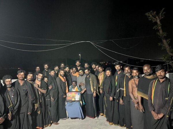 శంకరపట్నం మండలం తాడికల్ గ్రామానికి చెందిన జనగాం శ్రీనివాస్ గత తొమ్మిది సంవత్సరాలుగా అయ్యప్ప మాలదారులకు మహా అన్నదాన ప్రసాదం కార్యక్రమం నిర్వహిస్తున్నారు.శనివారం మణికంఠ ఆశ్రమ శిష్య బృందం ఆధ్వర్యంలో జనగాం శ్రీనివాస్ కు అయ్యప్ప స్వామి చిత్రపటాన్ని బహుకరించి చిరు సత్కారం చేశారు.మణికంఠ ఆశ్రమ శిష్య బృందం మాట్లాడుతూ హరిహర పుత్ర అయ్యప్ప స్వామి ఆశీస్సులు వారి కుటుంబాలకి ఎల్లవేళలా ఉండాలని దీవించారు.