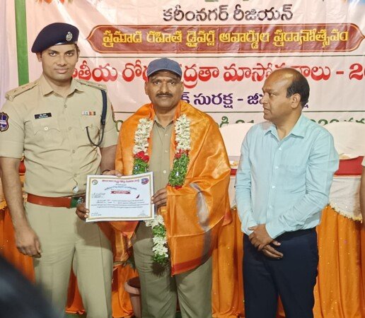 తెలంగాణ రాష్ట్ర రోడ్డు రవాణా సంస్థ కరీంనగర్-1 డిపోలో శంకరపట్నం మండలం నల్లవెంకయ్యపల్లి సీనియర్ ఆర్టీసీ డ్రైవర్ బేడిగ మహేశ్వర్ విధులు నిర్వర్తిస్తూన్నారు.జాతీయ రోడ్డు భద్రత మహోత్సవాలలో ప్రమాద రహిత డ్రైవర్ గా మొదటి స్థానంలో నిలిచారు.కరీంనగర్ సిపి గౌస్ ఆలాం,కరీంనగర్ రీజినల్ మేనేజర్ బి.రాజు శాలువాతో సన్మానించి,ప్రశంస పత్రం అందించారు.విధుల పట్ల నిబద్ధతతో పనిచేయడంతో మహేశ్వర్ సేవలు అభినందనీయమని మండల ప్రజలు హర్షం వ్యక్తం చేశారు.