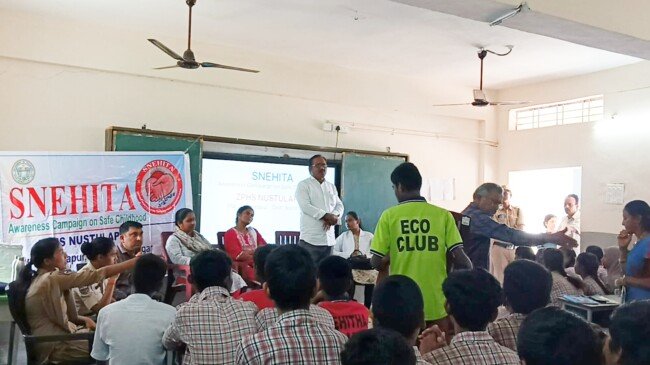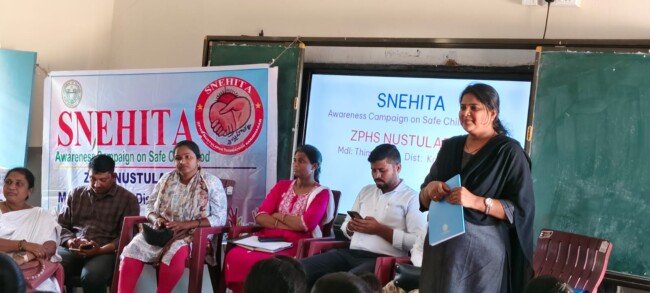 కరీంనగర్ జిల్లా తిమ్మాపూర్ మండలం నుస్తులాపూర్ జిల్లా పరిషత్ ఉన్నత పాఠశాలలో మంగళవారం గర్ల్ చైల్డ్ ఎం పవర్ మెంట్ మరియు ఆడోల్ సెంట్ సేఫ్టీ క్లబ్ లో భాగంగా స్నేహిత ఫేస్-2 కార్యక్రమము విజయవంతంగా జరిగింది. ముఖ్యఅతిథిగా విచ్చేసిన జిసిడిఓ కృష్ణారాణి గారు మాట్లాడుతూ బాల బాలికలు ఎవరికీ చెప్పుకోలేని సమస్యలను గ్రీవియన్స్ బాక్స్ లో కాంప్లైంట్ రూపంలో వేయడం ద్వారా తక్షణ పరిష్కారాలను పొందవచ్చనీ,అది ఎంతో గోప్యంగా, కాన్ఫిడెన్సియల్ గా వారి పేరు ఉంటుందని, పాఠశాలలో అన్ని రకాల క్లబ్స్ పనితీరు చాలా బాగుంది అనీ,పిల్లలందరూ క్రమశిక్షణ కలిగి,ప్రతిరోజు పాఠశాలకు హాజరుకావాలని అన్నారు.ఈ కార్యక్రమానికి చైల్డ్ ప్రొటెక్షన్ వింగ్ డిస్ట్రిక్ కోఆర్డినేటర్ సంపత్ గారు,సిడిపిఓ శ్రీలత,జిసిడిఓ కృపారాణి,ఏఈఓ శిరీష,ఎంఎల్ హెచ్ పి నిహారిక,హెడ్ కానిస్టేబుల్ భాస్కరాచారి, గ్రామ కార్యదర్శి ప్రేమ్ కుమార్,డబ్ల్యూ పిసి శ్వేత,అనూష,ఏఎన్ఎంలు మరియు అంగన్వాడి టీచర్లు,ప్రధానోపాధ్యాయులు వి.రవీందర్,స్నేహిత ఇన్చార్జి టీచర్లు ఇ.మైథిలి,ఇ.దేవేందర్ రెడ్డి,మరియు ఉపాధ్యాయుని ఉపాధ్యాయులు, విద్యార్థులు పాల్గొన్నారు.