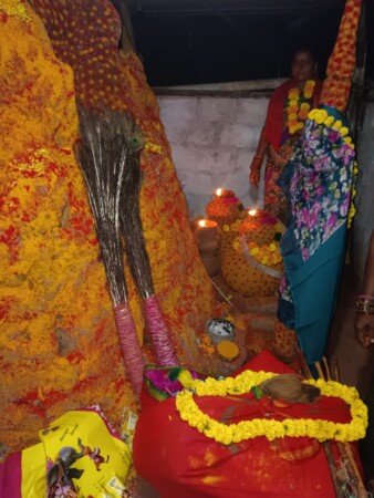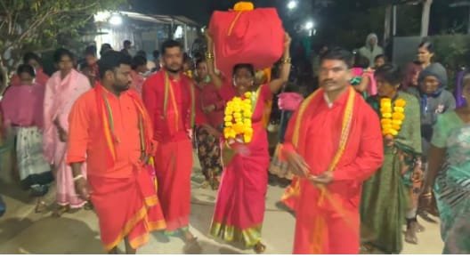 మండలంలోని మద్ది మేడారం జాతరలో బుధవారం రాత్రి 10 నాలుగు నిమిషాలకు గాంధీ నగర్ నుంచి సరళమ్మ బయలుదేరి గద్దల పైకి చేరుకున్నారు. స్థానిక ఎస్సై గోవర్ధన్ ఆధ్వర్యంలో భారీ బందోబస్తు మధ్య సరళమ్మను గద్దెల పైకి తీసుకొని వచ్చారు. ఆలయ పూజారులు దుర్శట్టి నాగరాజు హరికృష్ణలు తమ స్వగ్రామమైన గుల్లపాడు శివారు గాంధీనగర్ నుంచి డప్పు చప్పుళ్ళు శివసత్తుల పూనకాల నడుమ సారలమ్మను మద్ది మేడారం జాతర గడ్డకు తీసుకొచ్చారు. ఈ సందర్భంగా భక్తులు పూనకాలతో సారలమ్మను గద్దెకు చేర్చారు. ఈ కార్యక్రమంలో ఎమ్మార్వో ముప్పు కృష్ణ, ఎంపీడీవో శ్రీనివాస్ శర్మ, ఆలయ ఏవో, ట్రస్ట్ చైర్మన్ తదితర సిబ్బంది పాల్గొన్నారు.