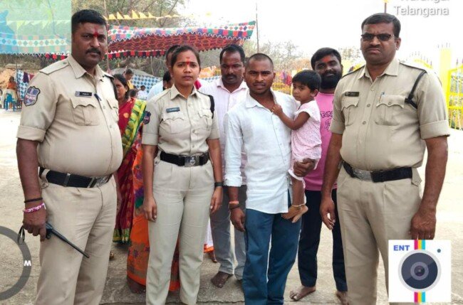 దామెర పోలీస్ స్టేషన్ పరిధిలో గల నడికూడ మండలం కంఠాత్మకూర్ సమ్మక్క – సారలమ్మ జాతరలో శుక్రవారం ఉదయం హసన్ పర్తి మండలం నాగారం గ్రామానికి చెందిన బండారి కిరణ్ కూతురు రష్మిక (2 ) జాతర ప్రాంగణంలో తప్పిపోగా దామెర పోలీసులు గుర్తించి, పాపను వారి తల్లి దండ్రులకు అప్పగించారు. అనంతరం పాప తల్లిదండ్రులు దామెర పోలీసు లకు కృతజ్ఞతలు తెలిపారు.