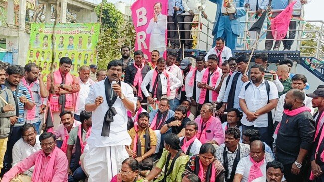 ప్రత్యేక రాష్ట్ర సాధనతో తెలంగాణ ప్రజల గుండెల్లో స్థిరస్థాయిగా నిలిచిన మాజీ ముఖ్యమంత్రి కల్వకుంట్ల చంద్రశేఖర్ రావును టచ్ చేస్తే రాష్ట్రం అగ్నిగుండం అవుతుందని ఎమ్మెల్సీ పోచంపల్లి శ్రీనివాసరెడ్డి హెచ్చరించారు. కెసిఆర్ కు సీట్ నోటీసులు జారీ చేసిన సందర్భంగా బిఆర్ఎస్ పార్టీ రాష్ట్రవ్యాప్తంగా నిరసన చేపట్టాలని పిలుపునిచ్చింది. ఆదివారం ఈ నేపథ్యంలో జనగామ జిల్లా స్టేషన్ ఘనపూర్, మరియు జఫర్గడ్ మండల కేంద్రంలో నిరసనలు, ర్యాలీలు నిర్వహించారు. టిఆర్ఎస్ శ్రేణులు ఈ సందర్భంగా జాతీయ రహదారులపై సీఎం రేవంత్ రెడ్డి దిష్టిబొమ్మను దగ్ధం చేయడానికి ప్రయత్నించగా పోలీసులు అడ్డుకున్నారు. అనంతరం ఏర్పాటు చేసిన సమావేశంలో ఆయన మాట్లాడుతూ ఎన్నికలు వచ్చిన ప్రతిసారి కాంగ్రెస్ నాటకం ఆడుతుందని అందులో భాగంగానే కెసిఆర్ కు సెట్ నోటీసులు అన్నారు. కెసిఆర్ దయవల్ల ఓటుకు నోటు కేసు నుండి తప్పించుకొని సీఎం అయిన తర్వాత రేవంత్ రెడ్డి కక్ష సాధింపు మానుకోవాలని ఆయన హెచ్చరించారు. స్థానిక ఎమ్మెల్యే కడియం శ్రీహరి వయసుకు గౌరవం ఇస్తున్నామని స్థాయి దిగజారి మాట్లాడితే ఆయన తల ఎక్కడ పెట్టుకుంటాడని ప్రశ్నించారు,. టిఆర్ఎస్ నుండి గెలిచానని చెప్పి కాంగ్రెస్ చుట్టూ తిరుగుతున్న ఎమ్మెల్యే కడియం శ్రీహరి ఇప్పటికైనా తన ఎమ్మెల్యే పదవికి రాజీనామా చేసి గౌరవాన్ని కాపాడుకోవాలని ఆయన కోరారు అనంతరం మాజీ ఎమ్మెల్యే తాటికొండ రాజయ్య మాట్లాడుతూ ప్రత్యేక రాష్ట్ర సాధనంతో పాటు రాష్ట్రాన్ని దేశంలో నెంబర్ వన్ రాష్ట్రంగా కీర్తి దిద్దిన కెసిఆర్ పై కేసులు మోపడం కాంగ్రెస్ ప్రభుత్వానికి సిగ్గుచేటు అన్నారు. అధికారంలో ఉన్న కాంగ్రెస్ పార్టీ ఎన్ని జిమ్మిక్కులు వేసిన మున్సిపాలిటీ ఎన్నికల్లో గులాబీ జెండా ఎగరడం పాల్గొన్నారు. ఈ కార్యక్రమంలో మండల పార్టీ అధ్యక్షులు మాచర్ల గణేష్, ఆకుల కుమార్, మారపక రవి బాలరాజు , కుంభం కుమార్, తోపాటు జఫర్గడ్ మండలంలో మండల పార్టీ అధ్యక్షులు జైపాల్ రెడ్డి,, ఉప సర్పంచ్ కొత్వాల కుమార్ తదితరులు పాల్గొన్నారు.,