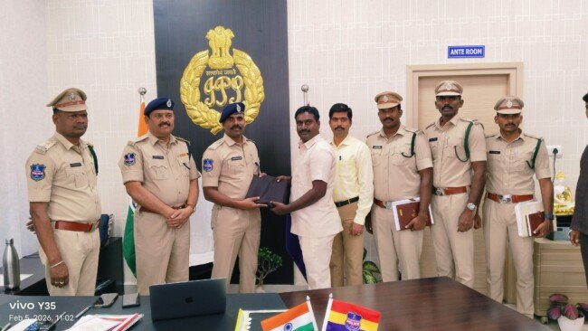 పోలీస్ వాహనాల డ్రైవర్ లుగా విధులు నిర్వర్తిస్తున్న సిబ్బందికి సఫారి యూనిఫాం అందించిన ఎస్పీ పోలీస్ శాఖ నందు పోలీసు వాహనాలు నడుపుతూ డ్రైవర్లుగా విధులు నిర్వర్తిస్తున్న పోలీసు సిబ్బందికి జిల్లా పోలీస్ కార్యాలయం నందు ఎస్పీ సఫారీ యూనిఫామ్స్ అందించారు.ఈ సందర్భంగా ఎస్పీ మాట్లాడుతూ పోలీసు వాహనాలను మంచి కండిషన్ లో ఉంచాలని వాహనాల నాణ్యత వచ్చేలా నిర్వహణ చేయాలని సూచించారు. పౌరులకు పోలీసు సేవలు అందించడంలో పోలీసు వాళ్ల సంఘటన స్థలాలకు, బాధితుల వద్దకు చేర్చడంలో వాహనాలు, డ్రైవర్ సిబ్బంది కీలక విధులు నిర్వర్తిస్తున్నారు అని తెలిపారు. సిబ్బంది క్రమశిక్షణ సమయపాలనతో పని చేయాలని, వాహనాలు ప్రమాదాలకు గురికాకుండా ముందస్తు రక్షణ చర్యలు పాటించాలని కోరారు. పోలీసు సిబ్బంది సంక్షేమం కోసం ఎల్లప్పుడూ కృషి చేస్తామని అన్నారు.ఈ కార్యక్రమంలో ఎస్పీ వెంట అదనపు ఎస్పి రవీందర్ రెడ్డి, స్పెషల్ బ్రాంచ్ ఇన్స్పెక్టర్ రామారావు, రిజర్వ్ ఇన్స్పెక్టర్ లు నారాయణరాజు, ప్రవీణ్ కుమార్, పోలీస్ మోటార్ ట్రాన్స్పోర్ట్ ఆర్ఎస్ఐ సురేష్, పోలీస్ సంక్షేమ ఆర్ఎస్ఐ సాయిరాం, పోలీస్ సిబ్బంది ఉన్నారు.