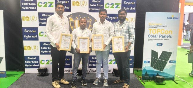 శుక్రవారం జరిగిన ఈ వేడుకలో శ్రీ బాలాజీ సోలార్ ఎనర్జీస్ డైరెక్టర్ సాగర్ రెడ్డి, టెక్నికల్ హెడ్ ఓదెలు, ప్రతినిధులు రాజేష్ రెడ్డి, అభిలాష్, తిరుపతి తదితరులు ఈ పురస్కారాలను అందుకున్నారు. 2011లో వ్యవస్థాపకులు మరియు మేనేజింగ్ డైరెక్టర్ పెద్ది గణేష్ రెడ్డి సారథ్యంలో ప్రారంభమైన ఈ సంస్థ, నాణ్యమైన సేవల ద్వారా నేడు రాష్ట్రంలో అగ్రగామిగా నిలిచింది.
