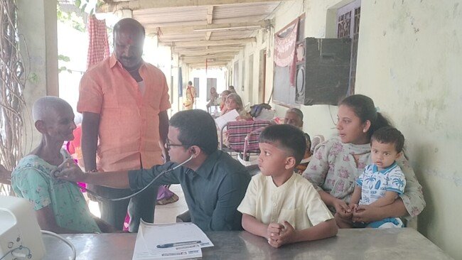 రాజన్న సిరిసిల్ల జిల్లా గంభీరావుపేట మండల కేంద్రంలోనీ మా అనాధ వృద్ధాశ్రమంలో వృద్ధాశ్రమ నిర్వాహకులు మల్లుగారి నర్స గౌడ్ నేతృత్వంలో అశ్విని హాస్పిటల్ నిర్వాహకులు డాక్టర్ సత్యనారాయణ స్వామి ఆధ్వర్యంలో ఉచిత వైద్య శిబిరం నిర్వహించారు. డాక్టర్ సత్యనారాయణ కుమారుడు డాక్టర్ అభినయ్ గోవర్ధన్ జన్మదినం సందర్భంగా వృద్ధులకు ఉచిత మందులు పంపిణీ తో పాటు కింటల్ బియ్యం. అలాగే వృద్ధులకు అన్నదాన కార్యక్రమం చేపట్టారు మారుమూల ప్రాంతంలో ప్రజలకు అశ్విని హాస్పిటల్ వైద్యులు డాక్టర్ సత్యనారాయణ స్వామి తోపాటు వారి కుమారుడు అభినయ్ ప్రాంత ప్రజలకు వైద్య సేవలు అందిస్తూ పెద్ద వైద్యానికి పట్టణాలకు వెళ్లకుండా పల్లె ప్రాంత ప్రజలకే సేవలందిస్తూ ప్రజల మన్నెనలు పొందుతున్నారు. వారు ప్రతి ఏటా నెలకు వృద్ధులకు 5000 అందిస్తూ వైద్య పరీక్షలతో పాటు మందులు ఉచితంగా సేవలు అందిస్తున్న సత్యనారాయణ అభినయ్ గార్లు నిండు నూరేళ్లు ఆయురారోగ్యాలతో ఉండి ఈ ప్రాంతానికి అనేక సేవలు అందించాలని వృద్ధులు కోరారు ఈ కార్యక్రమంలో డాక్టర్ అభినయ్ గోవర్ధనం సింధు. వైద్య సిబ్బంది హరీష్ నవనీత్ బాబు సాగర్ సతీష్ శ్యామల వృద్ధాశ్రమ నిర్వాహకులు మాజీ జెడ్పిటిసి మల్లుగారి నర్సాగౌడ్. వృద్ధులు తదితరులు పాల్గొన్నారు