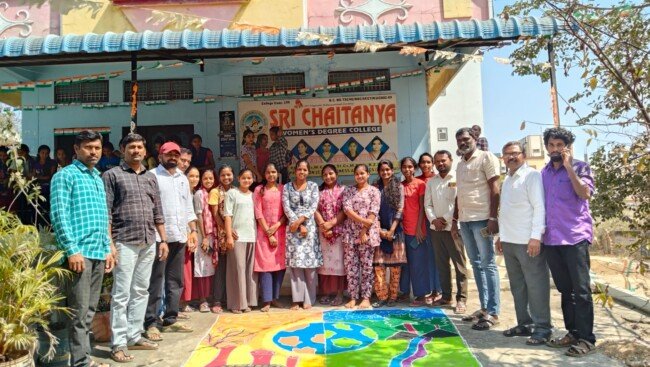 ప్రతిభ కు ప్రతిబింబం ఎర్రగట్టుగుట్ట వద్ద గల శ్రీ చైతన్య మహిళా డిగ్రీ కళాశాల అని కరస్పాండెంట్ కె. సదానందం అన్నారు. మంగళవారం కాలేజ్ డే లో భాగంగా.. ముందస్తుగా విద్యార్థులకు ముగ్గుల పోటీల నిర్వహించారు. ఈ సందర్భంగా విద్యార్థులు వారి ప్రతిభను ఉపయోగించి వేసిన ముగ్గులు విభిన్న అంశాలను ప్రతిబింబించేలా ఉన్నాయి. ముఖ్యంగా బీకాం ఫైనల్ ఇయర్ విద్యా ర్థులు వైష్ణవి, తేజస్విని పర్యావరణాన్ని కాపాడుకోకపోతే భవిష్యత్తులో ఎలాంటి ఇబ్బంది పడాల్సివస్తుందో తెలియజేసే ముగ్గు పలువురిని ఆలోచించే విధంగా ఉంది. జూనియర్స్ అనూష, అంకిత లు మొబైల్ ఫోన్ ను అతిగా వాడడం వలన కలిగే పరిణామాలపై, వేసిన ముగ్గు నేటి సమాజంలో విద్యార్థులు సోషల్ మీడి యా ప్రభావంతో ఇలా తమ విలువైన సమయాన్ని వృధా చేస్తున్నారో తెలియ పరుస్తూ చాలా చక్కగా ముగ్గుల రూపం లో వివరించారు. లక్ష్మి ,లహరి స్పందన లు పండుగల యొక్క విశిష్టత తెలియ పరిచే ముగ్గులు వేశారు. ఈ కార్యక్రమం లో కళాశాల ప్రిన్సిపల్ రాజు, డైరెక్టర్ శివ, అధ్యాపకులు సంపత్, మహమ్మద్ జమాలుద్దీన్, రమేష్, నాగరాజు, ప్రకాష్ రెడ్డి, రాకేష్, మౌనిక, సుమలత, లింగా రెడ్డి, కిరణ్, తిరుపతి, కృష్ణ, ప్రవీణ్ తదితరులు పాల్గొన్నారు.