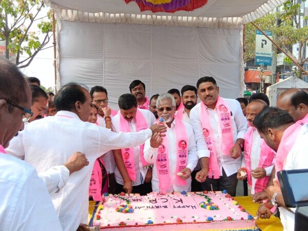 కరీంనగర్ తెలంగాణ చౌరస్తాలో బీఆర్ ఎస్ పార్టీ మాజీ ముఖ్యమంత్రి కేసీఆర్ గారి 72వ జన్మదిన వేడుకలు కేక్ కట్ చేసి బీఆర్ఎస్ పార్టీ శ్రేణులు కేసీఆర్ జన్మదిన వేడుకలను ఘనంగా నిర్వహించారు.బీఆర్ఎస్ పార్టీ నగర అధ్యక్షులు బీఆర్ఎస్ పార్టీ రాష్ట్ర ప్రధాన కార్యదర్శి మాజీ ఎమ్మెల్సీ నారదాసు లక్ష్మణ్ రావు,బీఆర్ఎస్ పార్టీ నగర అధ్యక్షులు చల్ల హరిశంకర్,బీఆర్ఎస్ పార్టీ జిల్లా అధ్యక్షులు జీవీరామకృష్ణారావు మాట్లాడుతూ తెలంగాణ తొలి ముఖ్యమంత్రి అపర భగీరథుడు కేసీఆర్ గారు జన్మదిన సందర్భంగా జిల్లా పార్టీ మరియు నగర పార్టీ ఆధ్వర్యంలో కెసిఆర్ జన్మదిన సందర్భంగా బీఆర్ఎస్ పార్టీ శ్రేణులు పెద్ద ఎత్తున పాల్గొన్నారు.కేసీఆర్ ఉద్యమ నాయకుడు,తెలంగాణ తెచ్చిన నాయకుడు,చరిత్రలో నిలిచిపోయిన నాయకుడు వారి జన్మదినాన్ని ఇవాళ పండుగ వాతావరణంలో కరీంనగర్ నగరంతో పాటు ఇతర జిల్లాలలో కూడా పెద్ద ఎత్తున బీఆర్ఎస్ పార్టీ నాయకులు,ప్రజలు కేసీఆర్ గారి జన్మదిన వేడుకలను జరుపుకోవడం చాలా సంతోషంగా ఉంది.కేసీఆర్ మనకు తెలంగాణ ఇచ్చి నీళ్లు నిధులు నియమాకాలు,అనేక సంక్షేమ పథకాలు,రైతులకు వడ్డీలేని రుణాలు,వృద్ధాప్య పింఛన్లు,కళ్యాణ లక్ష్మి,ఆరోగ్యశ్రీ,గర్భిణీ స్త్రీలకు కేసీఆర్ కిట్,సన్నబియ్యం వంటి అనేక సంక్షేమ పథకాలు అందించారు.కేసీఆర్ అందరికీ నాయకుడు ప్రజలందరూ మమేకమై ఈ రోజు కేసీఆర్ జన్మదిన వేడుకలు పెద్ద ఎత్తున జరుపుకుంటున్నారు.కేసీఆర్ ఆయురారోగ్యాలతో వందసంవత్సరాలు జన్మదినాలు జరుపుకోవాలని,తెలంగాణ ప్రజలు సుపరి పరిపాలన ఇచ్చినందుకు,మళ్లీ ముఖ్యమంత్రిగా ముందుకు రావాలని ప్రజలందరూ కోరుకుంటున్నారు.కేసీఆర్ గారు ప్రజలందరి ఆశీస్సులతో,అందరి దీవెనలతో గొప్పగా ఆరోగ్యంగా ఉండాలని మరొకసారి ముఖ్యమంత్రిగా పరిపాలించే అవకాశం వారికే ఉందంటూ ప్రజలందరూ ఎదురుచూస్తున్నారు. కేసీఆర్ నాయకత్వాన తెలంగాణ తెచ్చుకున్నాం. భారత దేశంలోనే తెలంగాణ మొదటి రాష్ట్రంగా తీర్చిదిద్దుకున్నాం.ఈరోజు తెలంగాణ రాష్ట్రం అభివృద్ధి పథకంలో గాని,సంక్షేమ పథకంలో గాని దేశమే, ప్రపంచం తెలంగాణ వైపు చూసే విదంగా తెలంగాణ రాష్ట్రాన్ని ఏర్పరిచిన మహానాయకుడు, గొప్ప నాయకుడి కేసీఆర్ గారి జన్మదినం బీఆర్ఎస్ పార్టీ ఆధ్వర్యంలో చేయడం చాలా సంతోషంగా ఉంది.కేసీఆర్ గారు,వారి కుటుంబం నిండు నూరేళ్లు చల్లగా ఉండాలని ఆ దేవుణ్ణి ప్రార్థిస్తున్నాం.