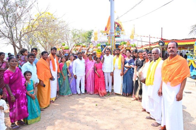 బసవలింగేశ్వర స్వామికి ఆదివారం నాడు భక్తితో శతఘటభిషేకం నిర్వహిం చారు. యాదాద్రి భువనగిరి జిల్లా భూదాన్ పోచంపల్లి మున్సిపాలిటీ పరిధిలో శ్రీ గంగా పార్వతీ సమేత బసవ లింగేశ్వర స్వామి దేవాలయంలో జ రుగుచున్న స్వామి కళ్యా ణ రథోత్సవాల్లో భాగంగా ఈ కార్యక్రమం నిర్వహిం పబడింది. వందలాది మంది మహిళలు యువ తులు సర్వలలో జలాన్ని తీసుకోవచ్చు స్వామివా రికి భక్తితో భిషేకం చేశా రు.టెంకాయలు సమ ర్పించారు. ఈ కార్యక్ర మంలో కౌన్సిలర్లు కొండ మడుగు ఎల్ల స్వామి, రా వుల జంగయ్య, ఆలయ కమిటీ చైర్మన్ మైపాల్ రె డ్డి తో పాటు ధర్మకర్తలు, భక్తజనులు పాల్గొన్నారు.