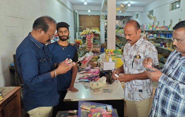 జిల్లా అధికారుల ఆదేశాల మేరకు వేములవాడ పట్టణంలో నకిలీ సిగరేట్ల విక్రయాలపై టాస్క్ఫోర్స్ పోలీసులు ఆకస్మిక దాడులు నిర్వహించినట్లు టాస్క్ఫోర్స్ సి.ఐ నటేష్ తెలిపారు.పట్టణంలోని పలు కిరాణా షాపులు, సూపర్ మార్కెట్లు, పాన్ షాపుల్లో విస్తృతంగా తనిఖీలు చేపట్టినట్లు ఆయన పేర్కొన్నారు. ప్రముఖ బ్రాండ్ల పేర్లతో నకిలీ సిగరేట్లను విక్రయించడం చట్టవిరుద్ధమని స్పష్టం చేశారు. ఇలాంటి అక్రమాలకు పాల్పడితే కఠిన చర్యలు తప్పవని హెచ్చరించారు.నకిలీ సిగరేట్ల తయారీ లేదా విక్రయాలపై సమాచారం ఉన్నట్లయితే వెంటనే సమీప పోలీస్ స్టేషన్కు తెలియజేయాలని ప్రజలు, వ్యాపారులను సి.ఐ కోరారు. అక్రమ కార్యకలాపాల నిర్మూలనకు ప్రజల సహకారం అత్యవసరమని ఆయన తెలిపారు.ఈ దాడుల్లో టాస్క్ఫోర్స్ సిబ్బంది తిరుపతి, రాజేష్, శ్రీనివాస్, శివ పాల్గొన్నారు.