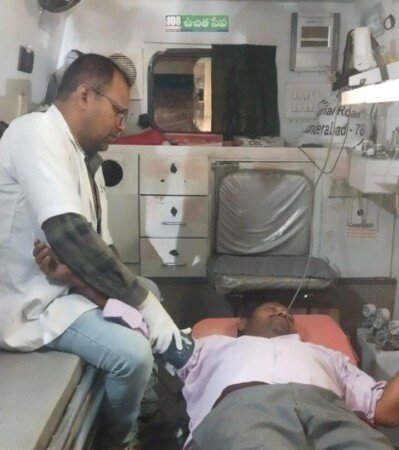 రెండు బైకులు ఎదురెదురుగా ఢీకొని వ్యక్తికి తీవ్ర గాయాలైన ఘటన శంకరపట్నం మండలం మొలంగూర్ ఎక్స్ రోడ్డులో జరిగింది.సైదాపూర్ మండలం సోమారం గ్రామస్తులు కాశిపాక రమేష్ అతని కుమారుడు సంపత్ కేశవపట్నం నుండి సోమారం బయలుదేరారు.కొత్తగట్టు గ్రామస్తుడు నల్ల యుగేందర్ రెడ్డి కేశవపట్నం వెళ్తుండగా మార్గమధ్యలో మొలంగూర్ ఎక్స్ రోడ్డులో రెండు బైకులు ఎదురెదురుగా ఢీ కొన్నాయి.ఈ ఘటనలో కాశిపాక రమేష్ కుడి కాలుకు తీవ్ర గాయమై రోడ్డుపై పడడంతో కుమారుడు సంపత్ 108 కి,పోలీసులకి సమాచారం అందించడంతో సంఘటన స్థలానికి చేరు కున్న 108 సిబ్బంది ఈఎంటి గూడూరి సతీష్ రెడ్డి,పైలెట్ ఏం.గోపికృష్ణ ప్రథమ చికిత్స అందిస్తూ హుజురాబాద్ ఏరియా ఆసుపత్రికి తరలించారు. సంఘటన స్థలానికి చేరుకున్న పోలీసులు వివరాలు నమోదు చేసుకున్నారు.