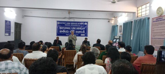 న్యాయ వివాదాల సత్వర పరిష్కారమే లక్ష్యంగా కుషాయిగూడ జిల్లా కోర్టు ఆవరణలో శనివారం నిర్వహించిన జాతీయ లోక్ అదాలత్ అద్భుత స్పందన లభించింది. జాతీయ, రాష్ట్ర న్యాయ సేవాధికార సంస్థల ఆదేశాల మేరకు మల్కాజిగిరి జిల్లా న్యాయ సేవాధికార సంస్థ ఆధ్వర్యంలో ఈ కార్యక్రమం నిర్వహించారు. జిల్లా ప్రధాన న్యాయమూర్తి, జిల్లా న్యాయ సేవాధికార సంస్థ చైర్మన్ వి. బాల భాస్కర్ రావు జ్యోతి ప్రజ్వలన చేసి ఈ మెగా లోక్ అదాలత్ను ప్రారంభించారు.