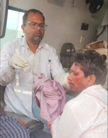 బైకు అదుపు తప్పి రోడ్డుపై పోసిన వడ్ల కుప్ప పై పడడంతో ఓదెల మండలం కనగర్తి గ్రామస్తుడు గాజుల శంకరయ్య(60)కు తీవ్ర గాయాలు అయ్యాయి.మానకొండూరు మండలం గంగిపల్లి కుటుంబ సభ్యుల ఇంటికి వెళ్లి తిరుగు ప్రయాణంలో గంగిపల్లి-ఏరడపల్లి మార్గమధ్యలో కుక్క అడ్డు రావడంతో బైక్ అదుపు తప్పడంతో రోడ్డుపై పోసిన వడ్ల కుప్పను ఢీకొట్టడంతో శంకరయ్య కుడి భుజం విరిగి,తలకు బలమైన గాయమైంది.స్థానికులు 108 కి సమాచారం అందించడంతో సంఘటన స్థలానికి చేరుకున్న ఈఎంటి సతీష్ రెడ్డి, పైలెట్ గోపికృష్ణ ప్రథమ చికిత్స అందిస్తూ కరీంనగర్ ఏరియా ఆస్పత్రికి తరలించారు.